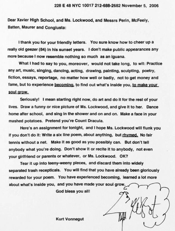 It could be a piece of writing like this letter from Kurt Vonnegut to a bunch of school kids, or you could talk about an idea from a book you’ve just read, or it could even be as simple as a quote. No matter, so long as it has something to say about the business of having ideas and making stuff.